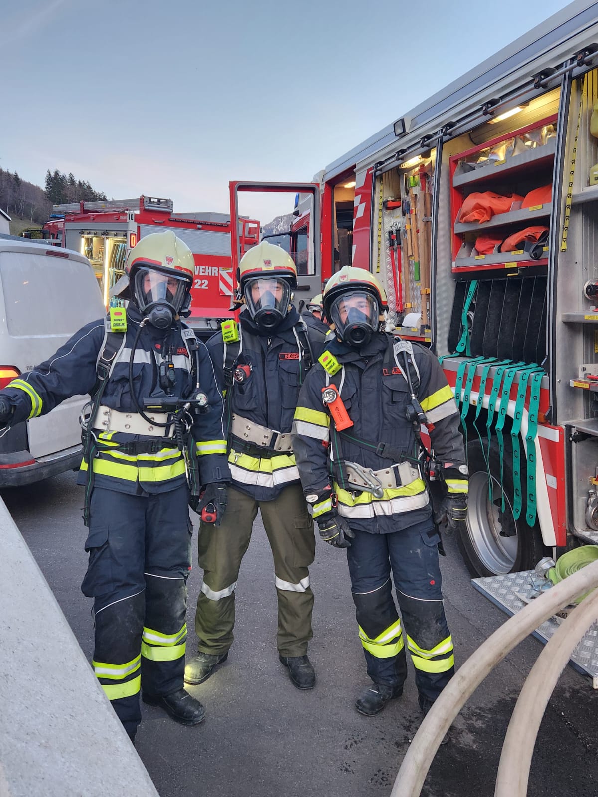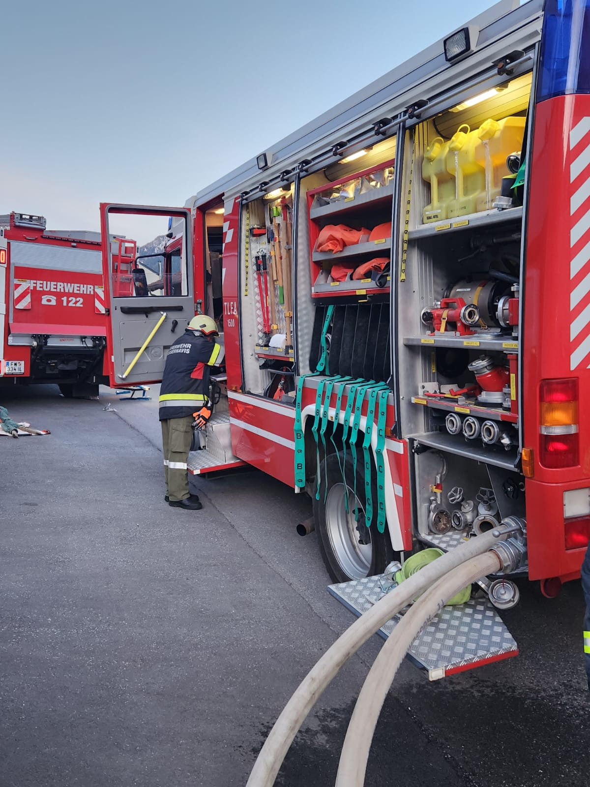 Nach Eintreffen am Einsatzort wurde Rauch aus dem Gebäude erkannt. Atemschutztrupps vom TLF-A und LFB-A haben die vermiesten Personen gefunden und geborgen mit Hilfe der FF Steinach und ihrer DLK. Das KLF-A hat eine Speiseleitung für, denn TLF-A und GTLF-A aufgebaut.
